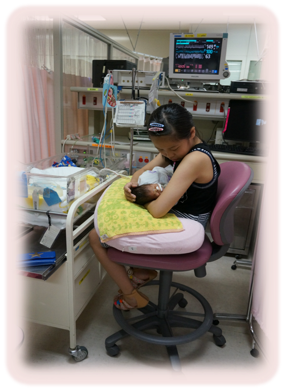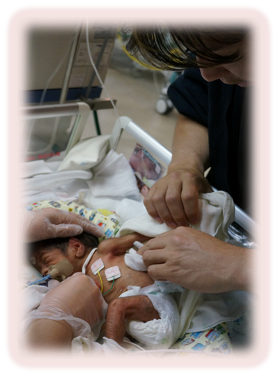 NICU病棟にいる頃の、面会中の様子(リニューアル前の病棟です)