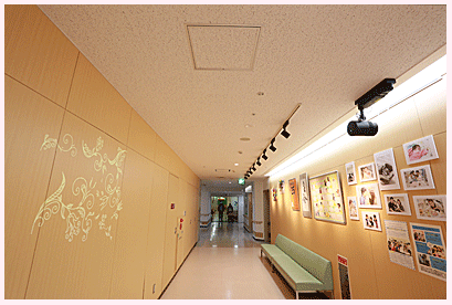 奥の右側にNICU病棟、左側に新生児病棟があります。