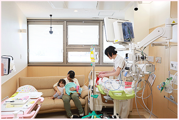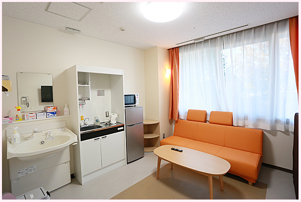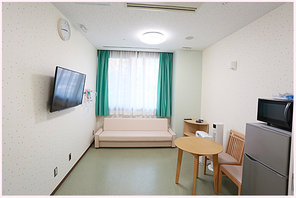 ご家族が赤ちゃんと一緒に滞在できる個室が6部屋あります。
