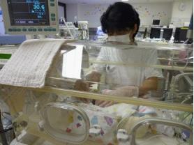 赤ちゃんがおなじ姿勢で長くすごすと、痰がたまりやすくなり、皮膚に負担がかかってしまうため、保育器の中で定期的にからだの向きを変えます。