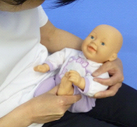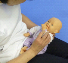 赤ちゃんと目線をあわせ、おだやかに声かけしながら行います。