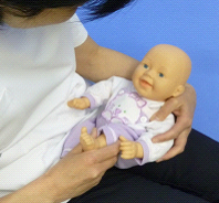 理学療法士は赤ちゃんの体操や、赤ちゃんが落ち着きやすい抱っこのしかたをご家族にお伝えします。