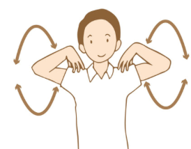 指先を肩に乗せて前へ、後ろへ肩を回します。