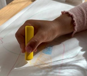 「手や指に力が入りすぎているかな?」「クレヨンがおれやすいな・・」など感じたら 太めのものをためしてみるとよいでしょう。
